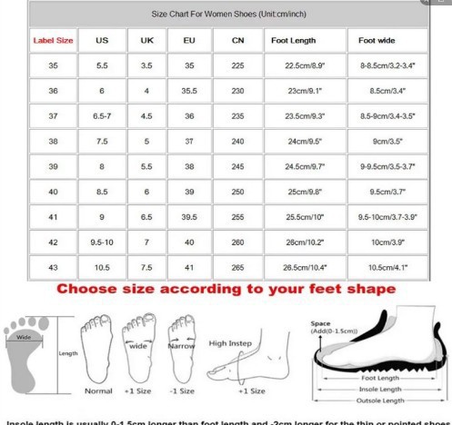 Please do measure your feet length first and then choose your shoes size according to our Size Chart.
