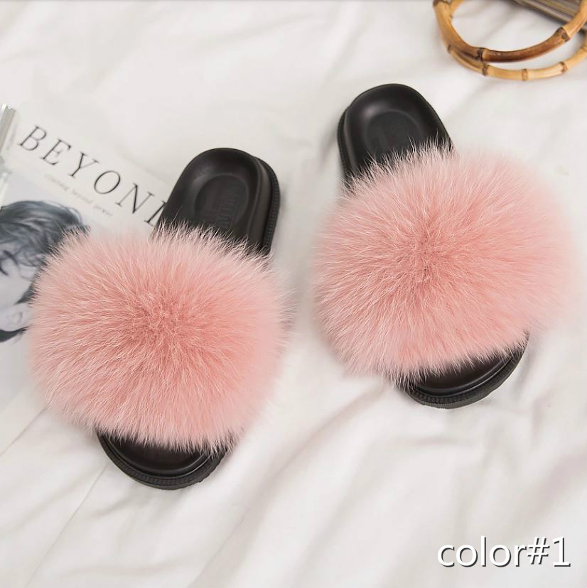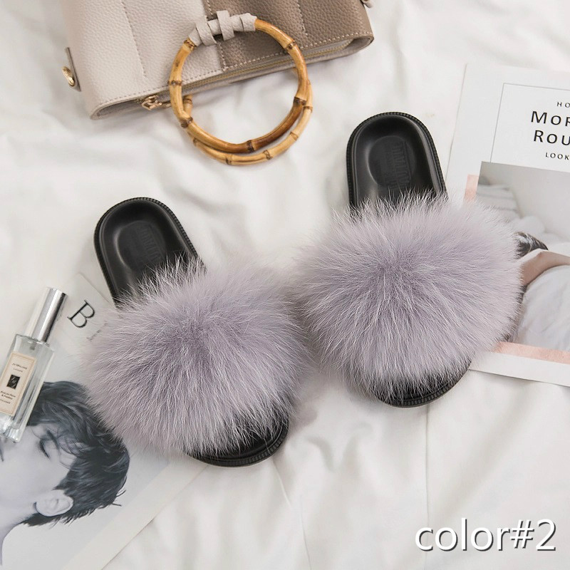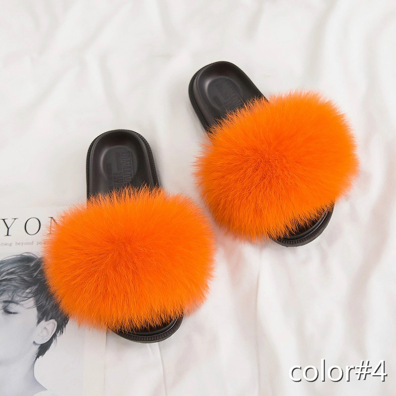 Fashion Fox Fur Slides Sandals for Women Furry Slippers
