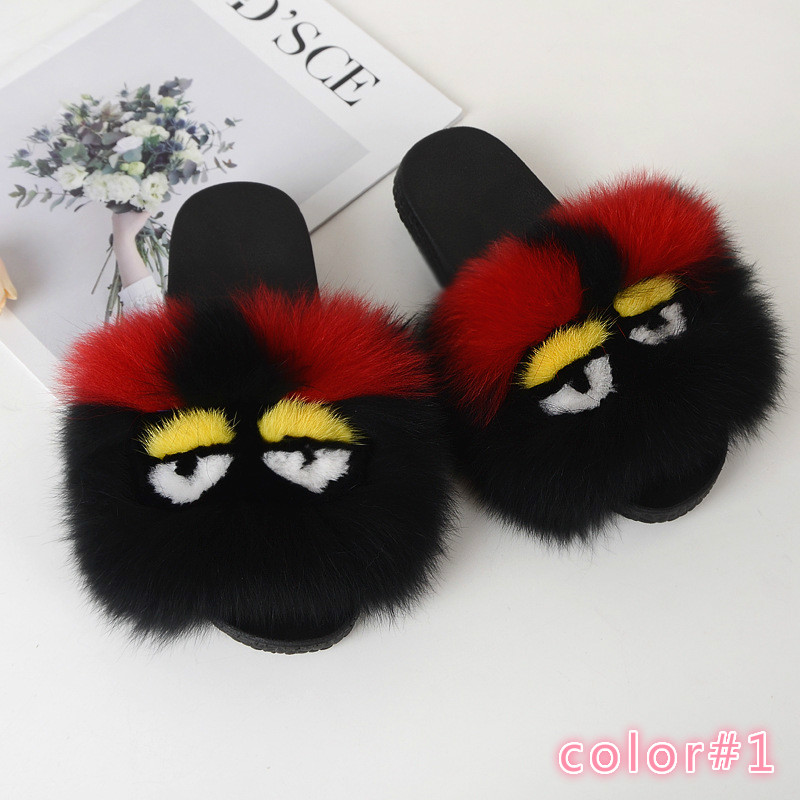 Fox Fur Little Monster Slides Slippers for Women and Men