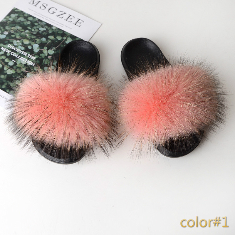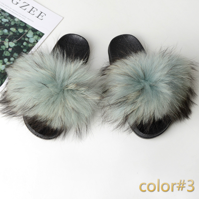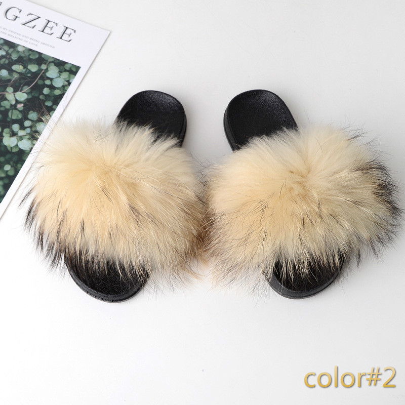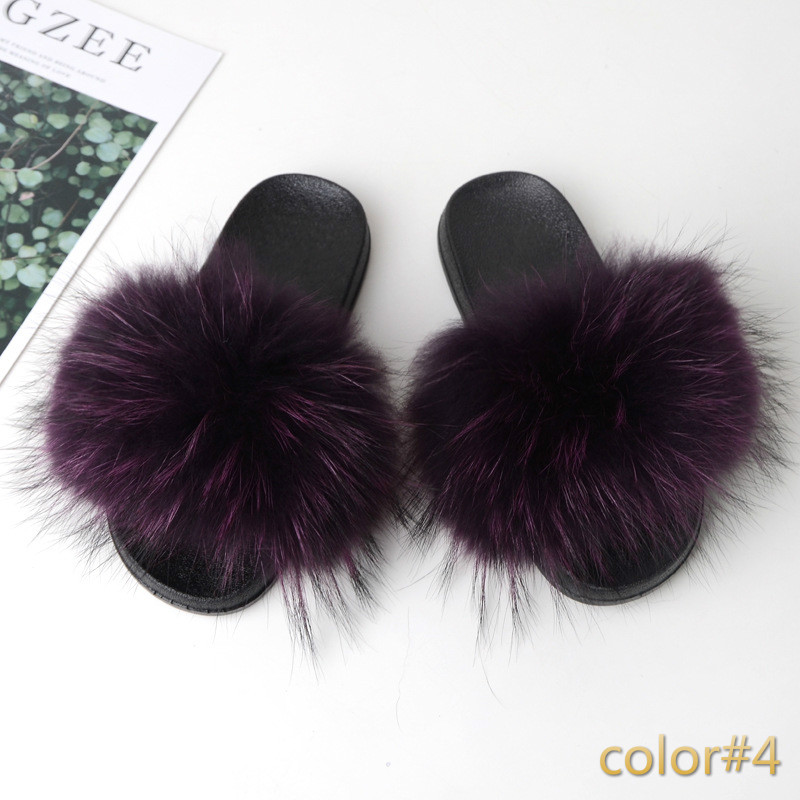 Simple Fox Fur Slides Slippers for Women