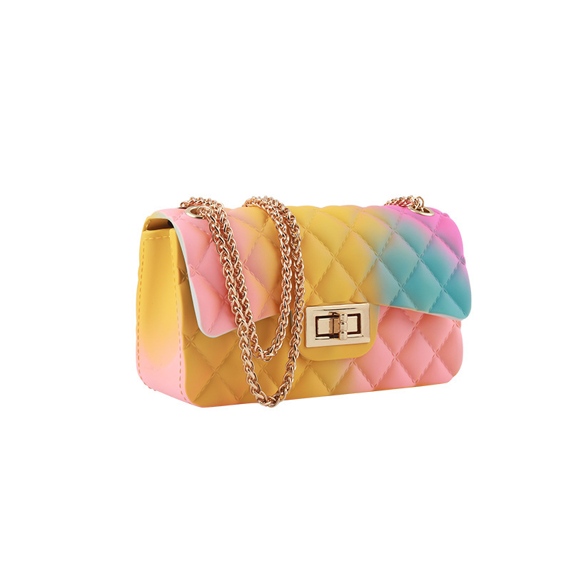 Cute Jelly Bags Gold Chain Rainbow Messenger Trending Purses Women Handbags Shoulder Bags
