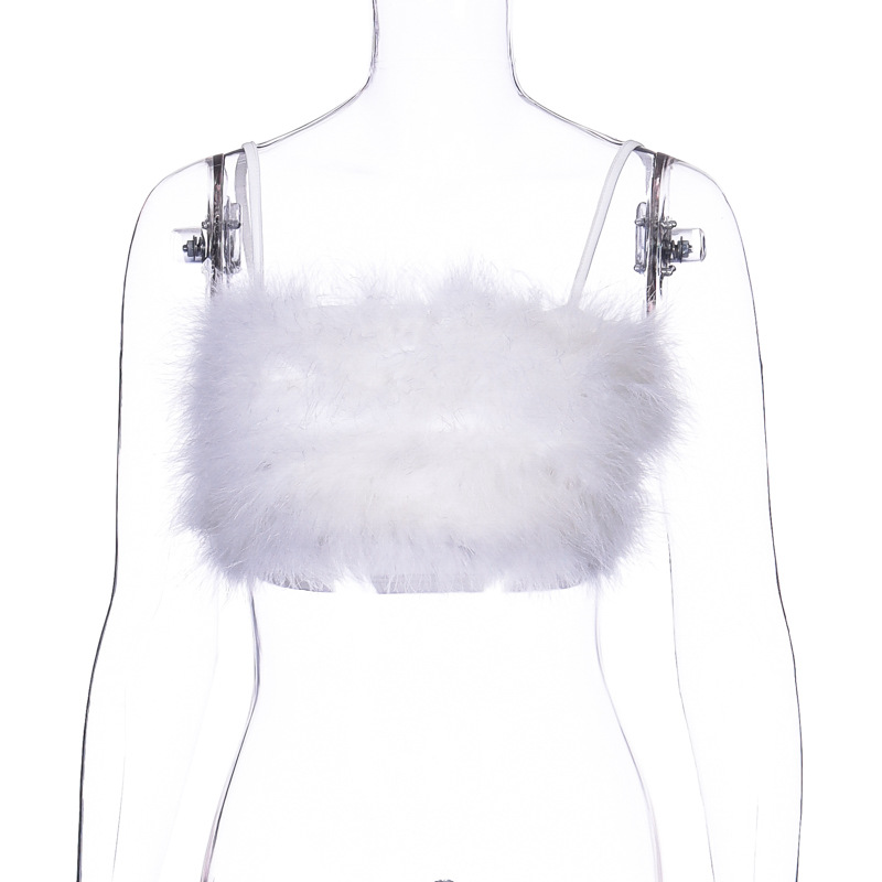 Fashion Fur Tops Women Harness T-Shirt Chest wrap