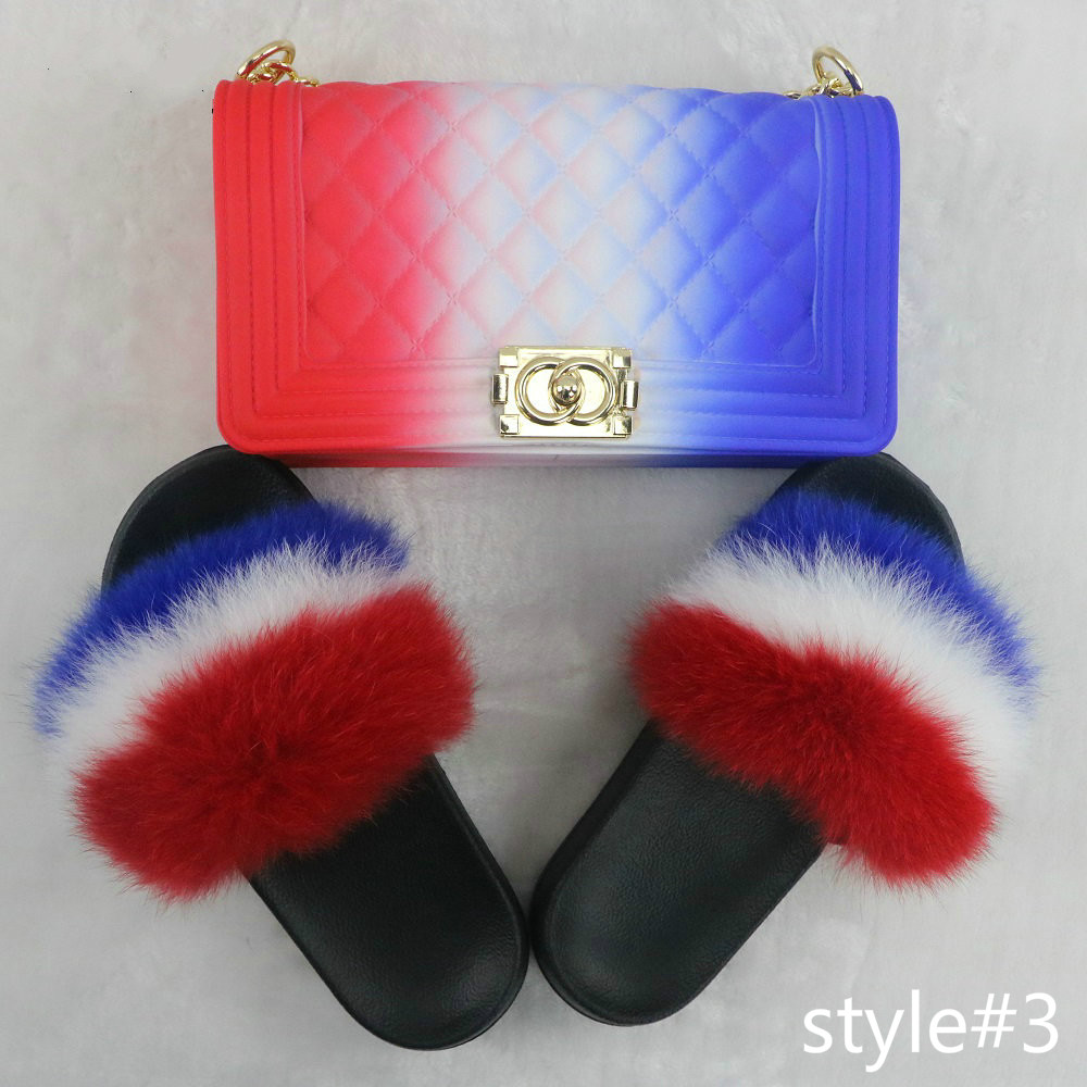 Rainbow Fox Fur Slides Furry Slippers Furry Crossbody Sets Jelly Color Diamond Pattern Handbags Purses