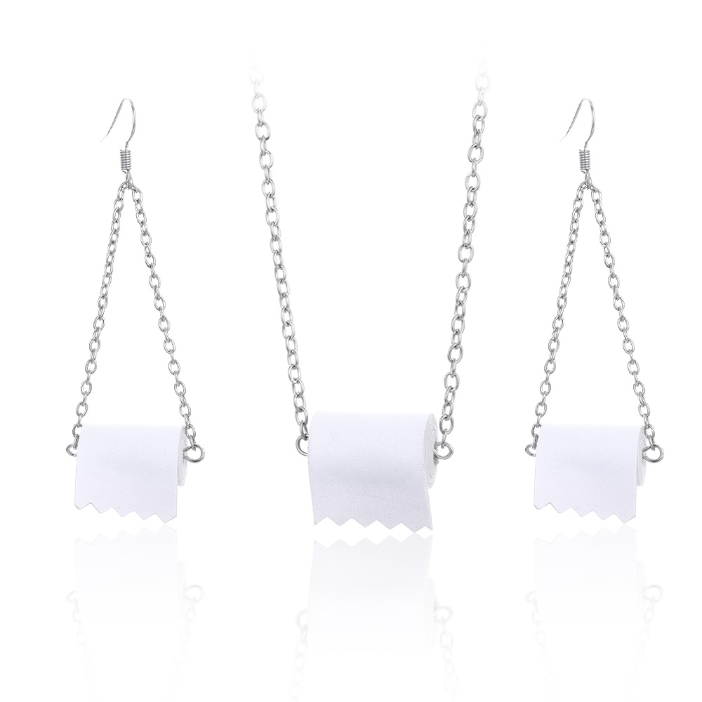 Fashion Individualism Toilet Paper Shape Earrings and Necklace Set Ear Wires