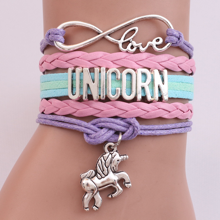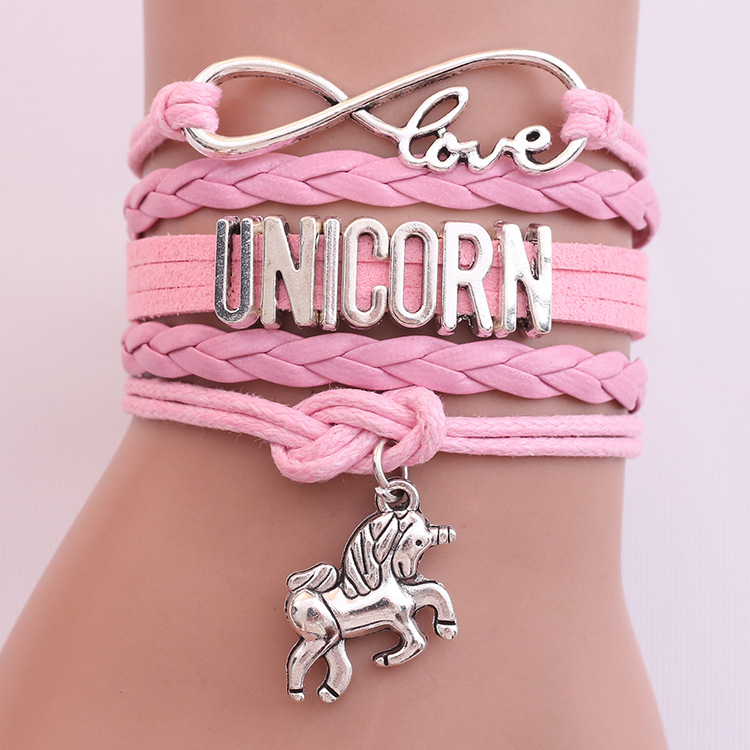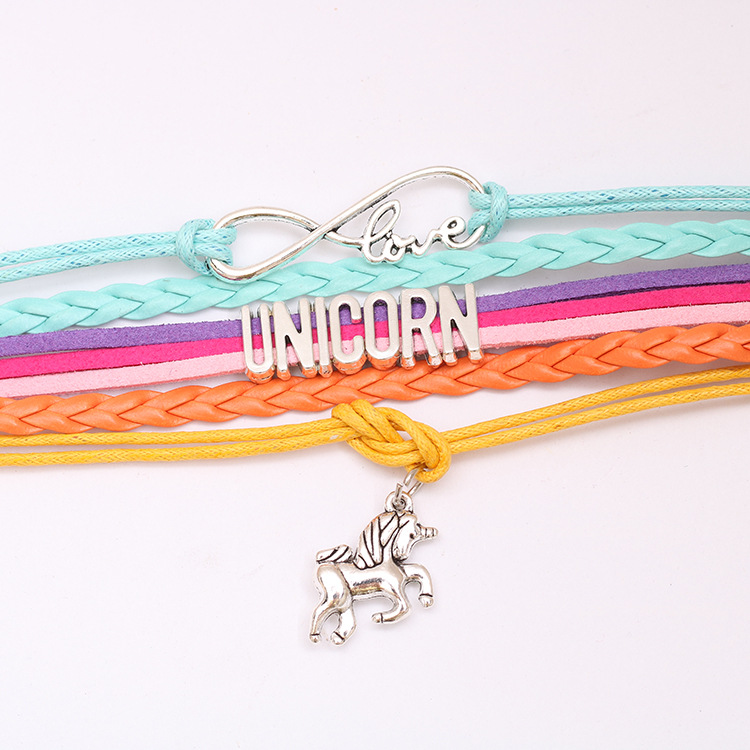 Handmade Stylish Unicorn Letter Leather Rope Bracelet
