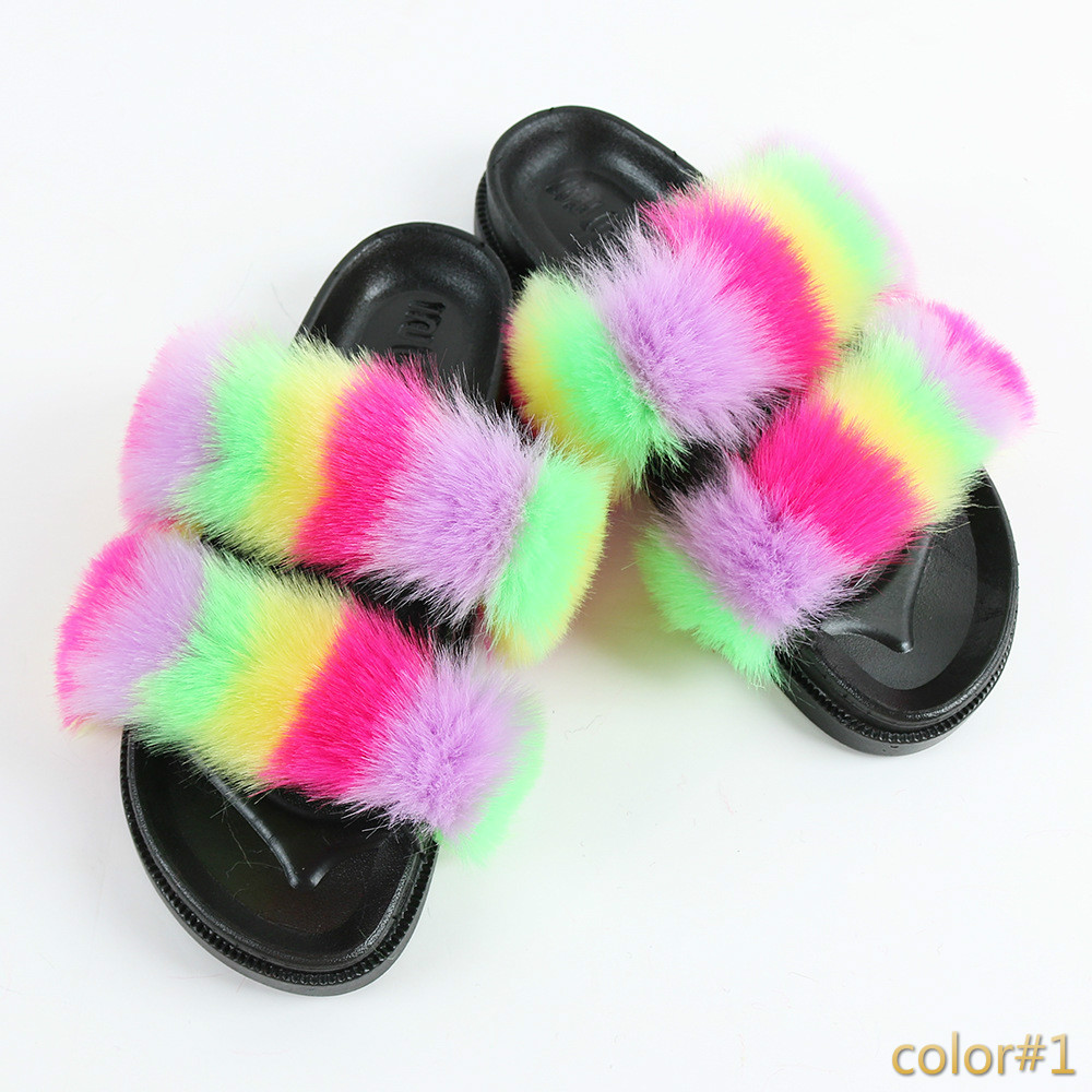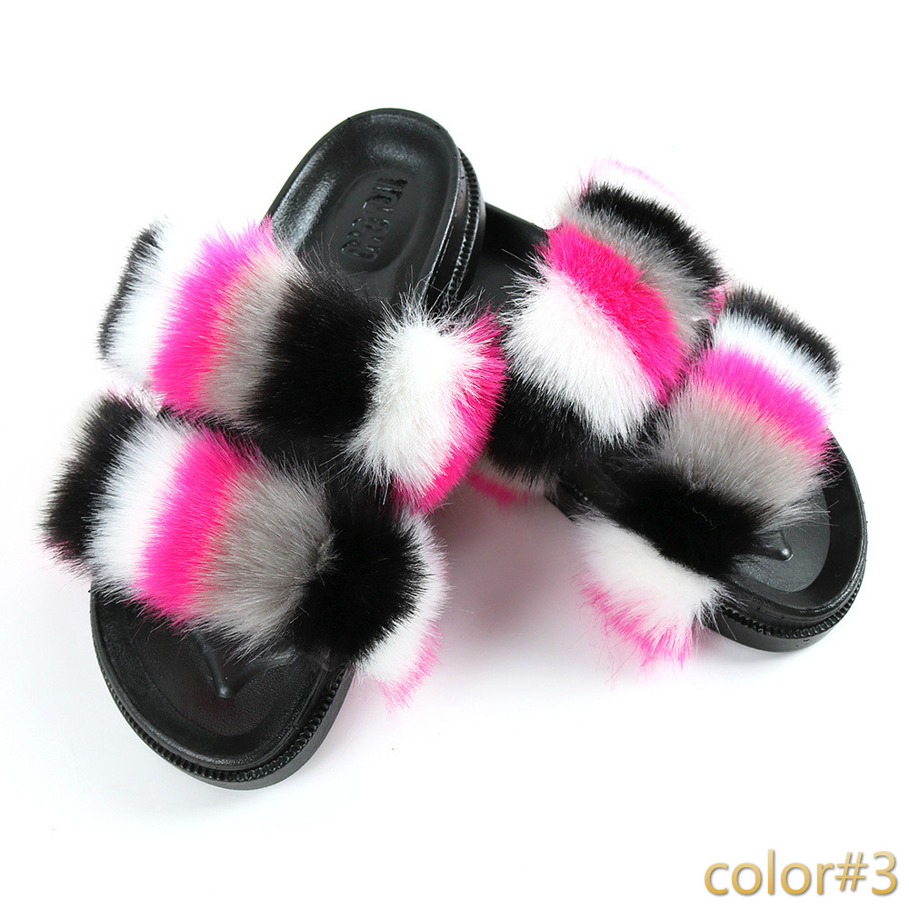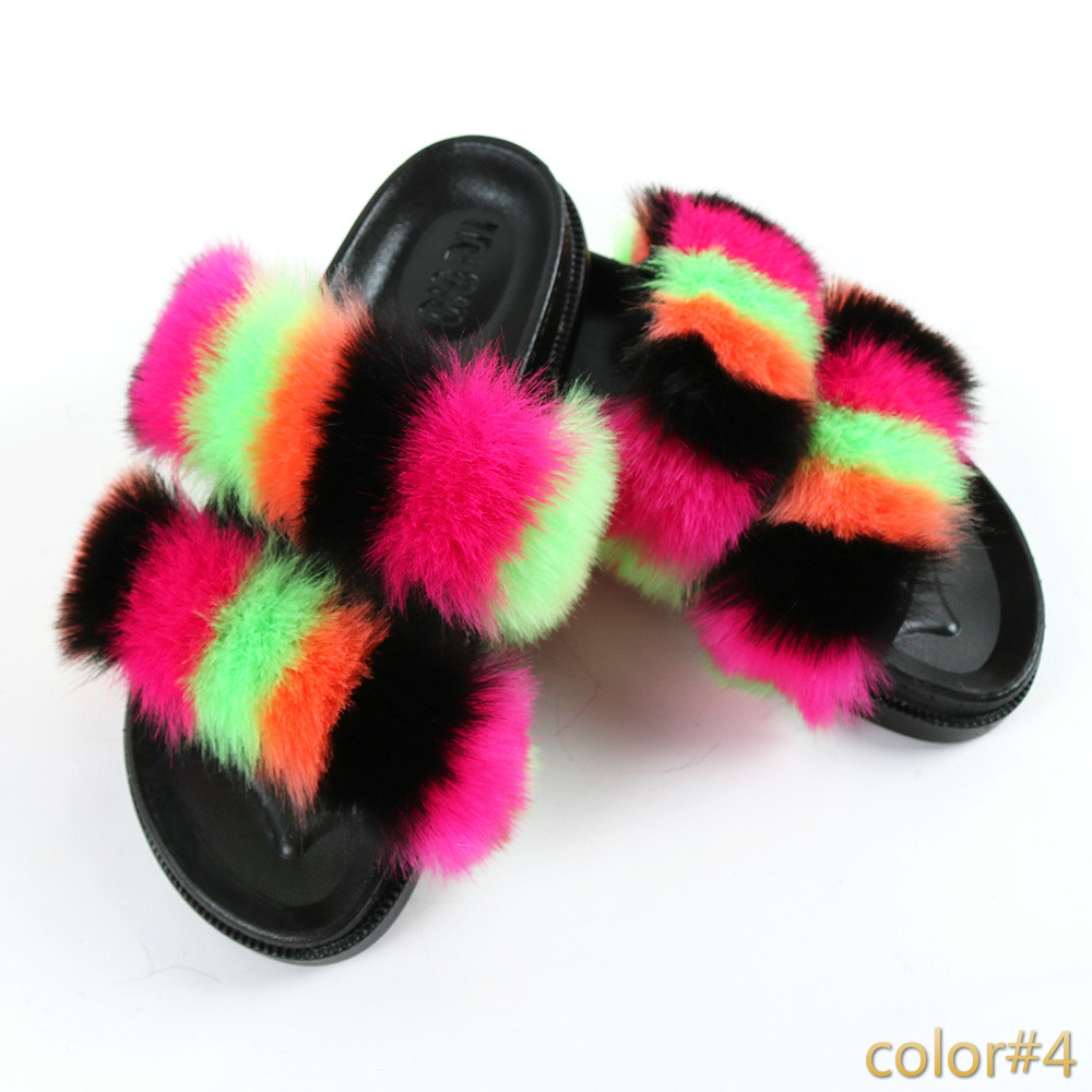 Fashion Fox Fur Slides Slippers Flat-heeled Fur Slippers 4