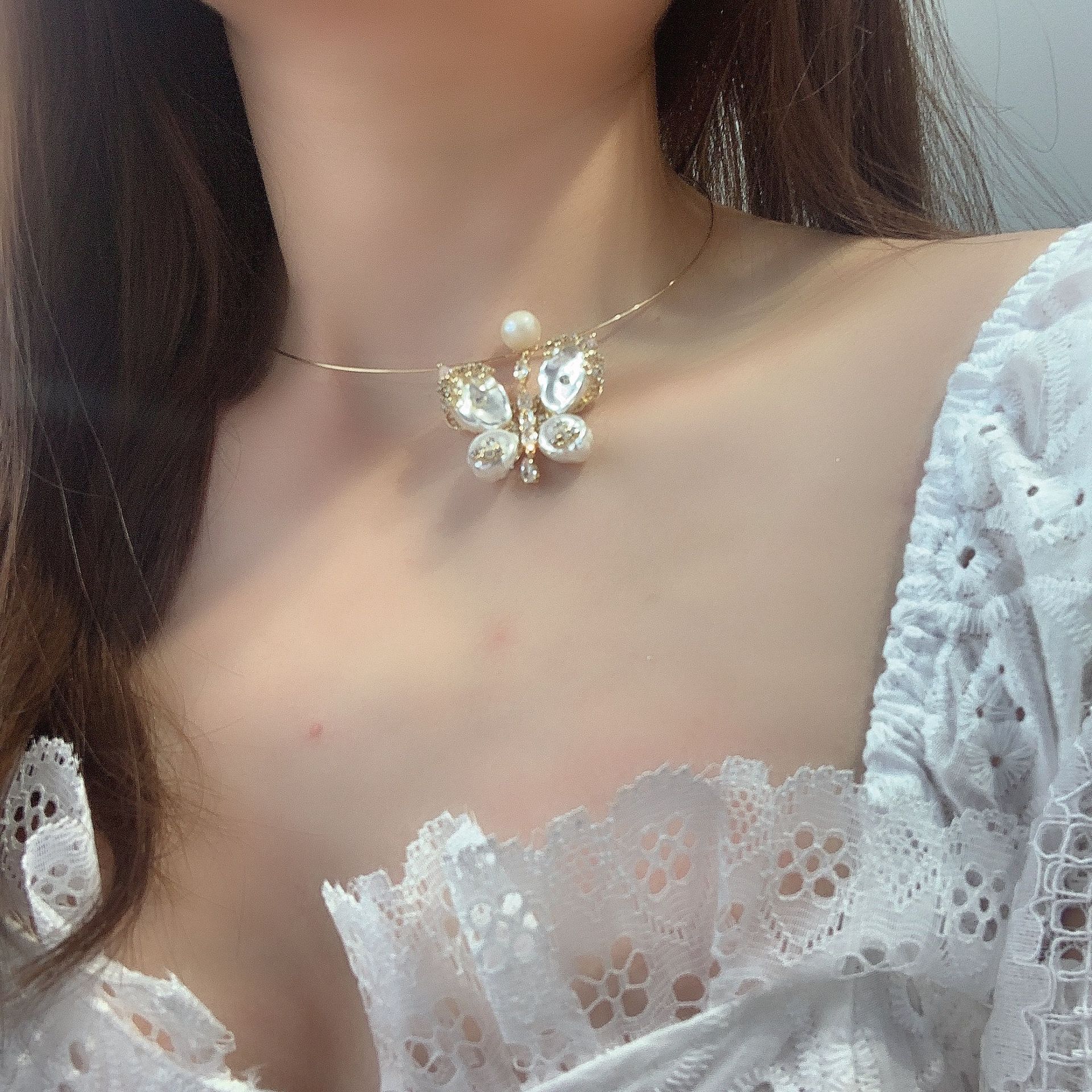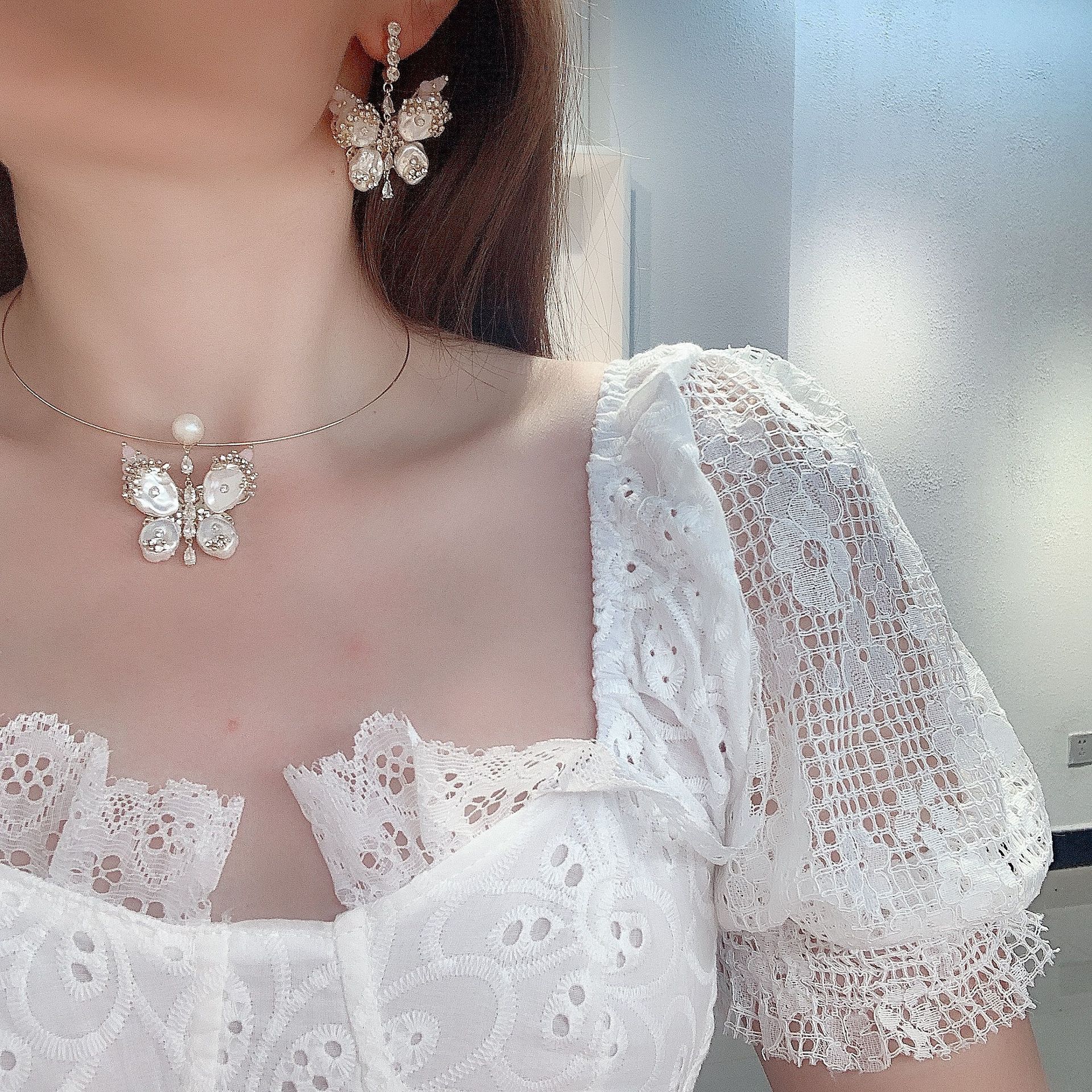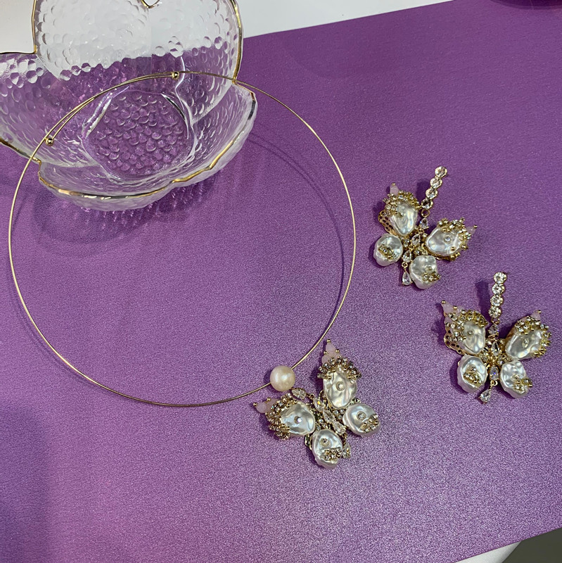 Retro Style Baroque Pearl Butterfly Necklace Butterfly Earrings