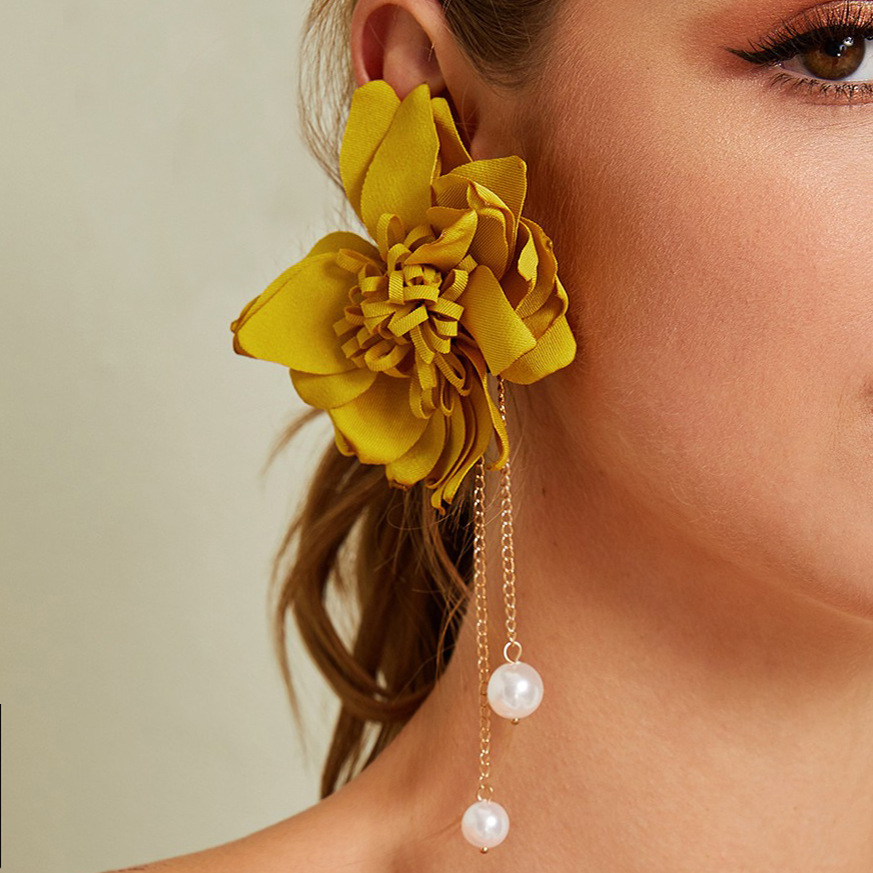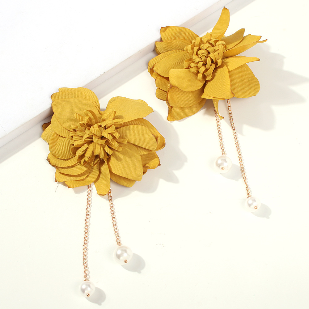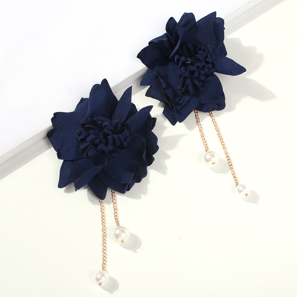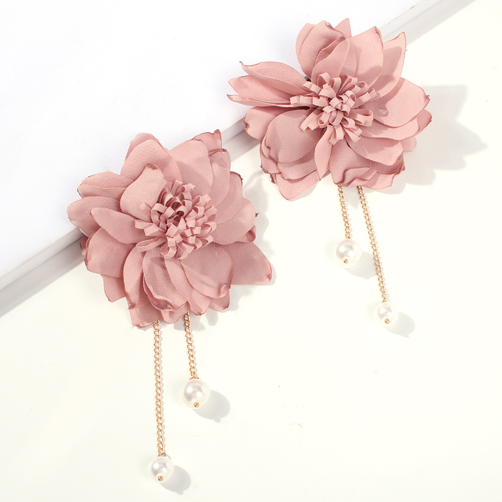 Fashion Sweet Flower Imitation Pearl Fabric Earrings