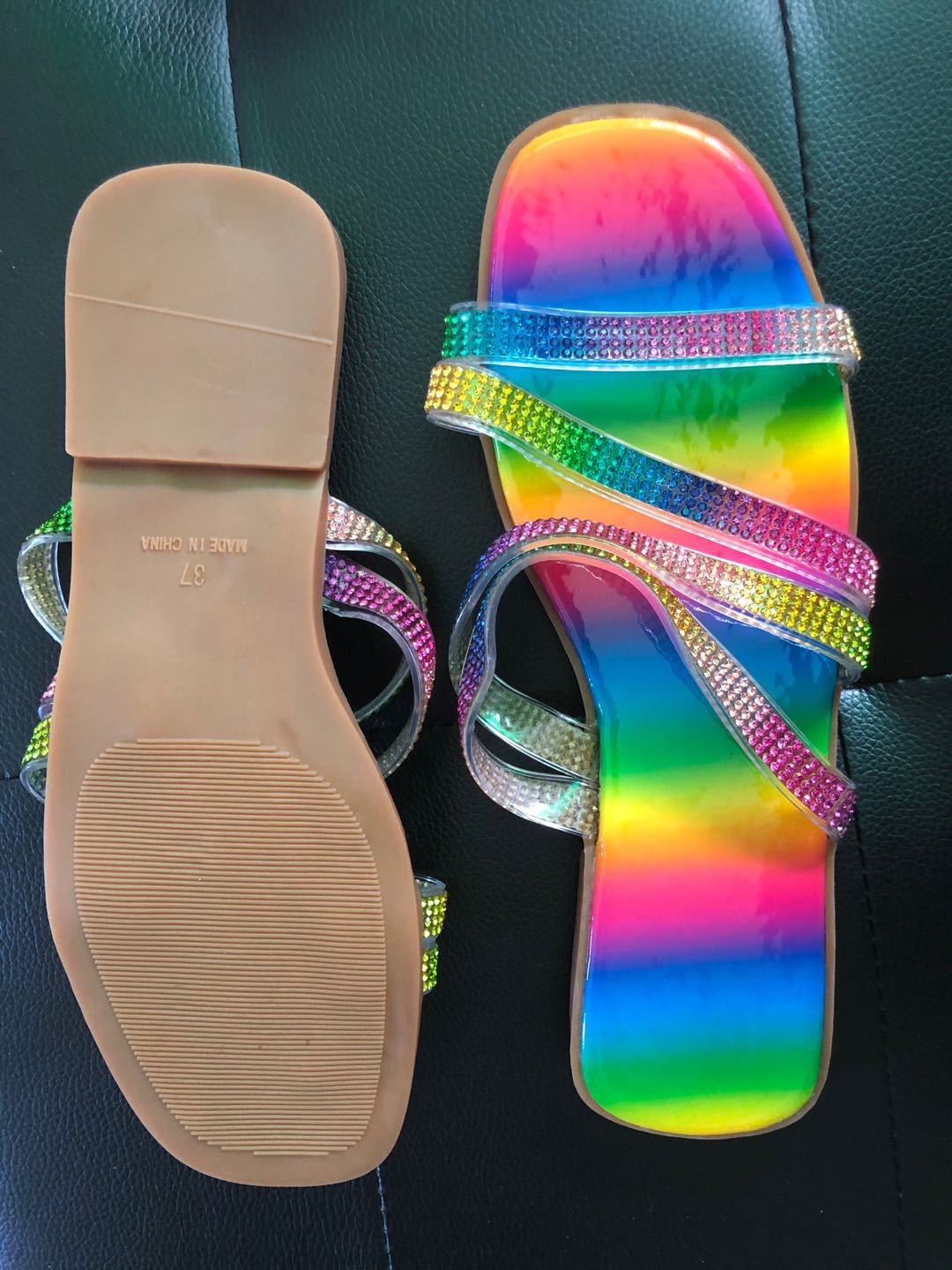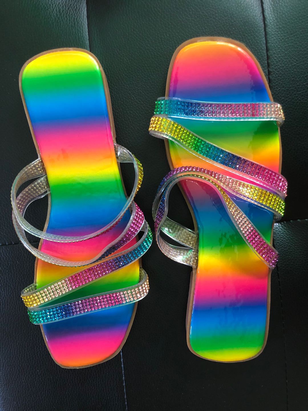 Summer Rhinestones Rainbow Sandals Candy Color Slippers Shoes