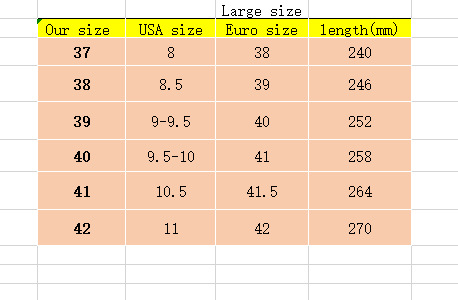 Please do measure your feet length first and then choose your shoes size according to our Size Chart.