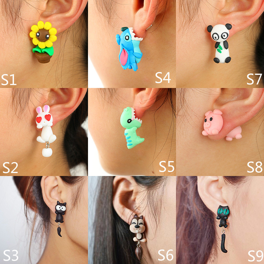 Fashion Cartoon Cute Flower Kitty Polymer Clay Earrings