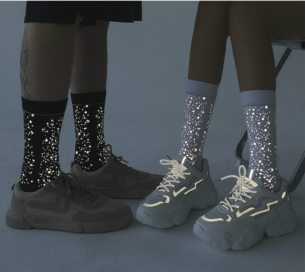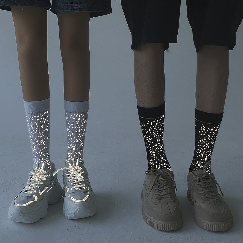 Fashion Starry Reflective Knee-High Couple Socks Sports Female and Male Socks for Lovers