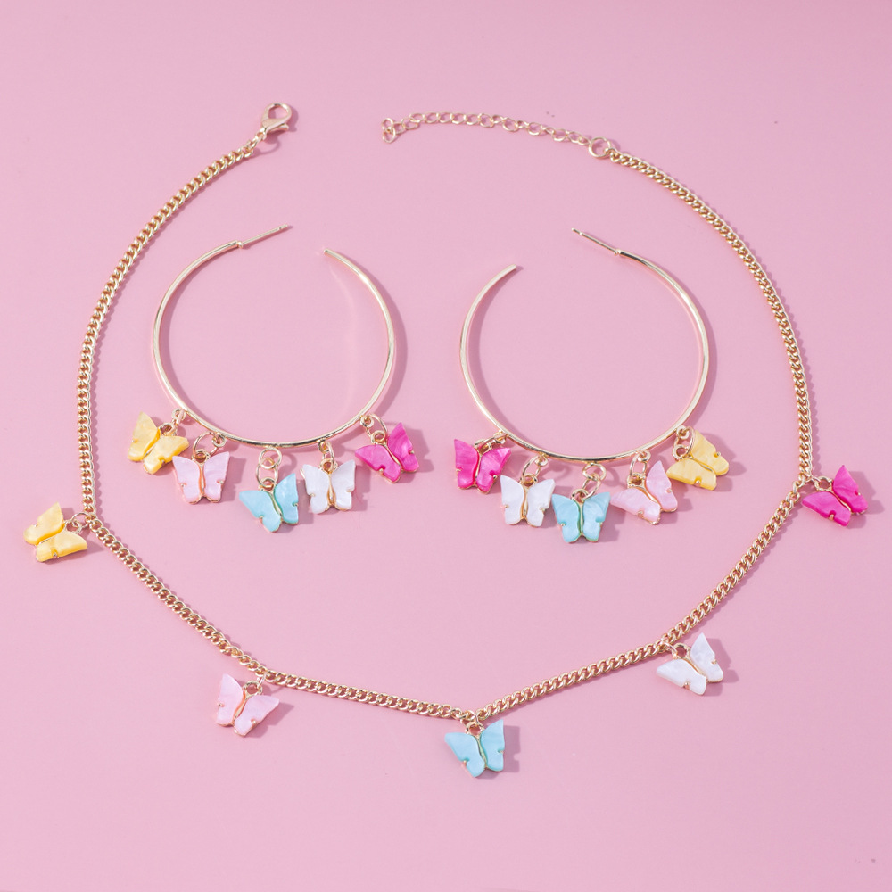 Fashion Colorful Acetate Sheet Butterfly Earrings Necklace Set
