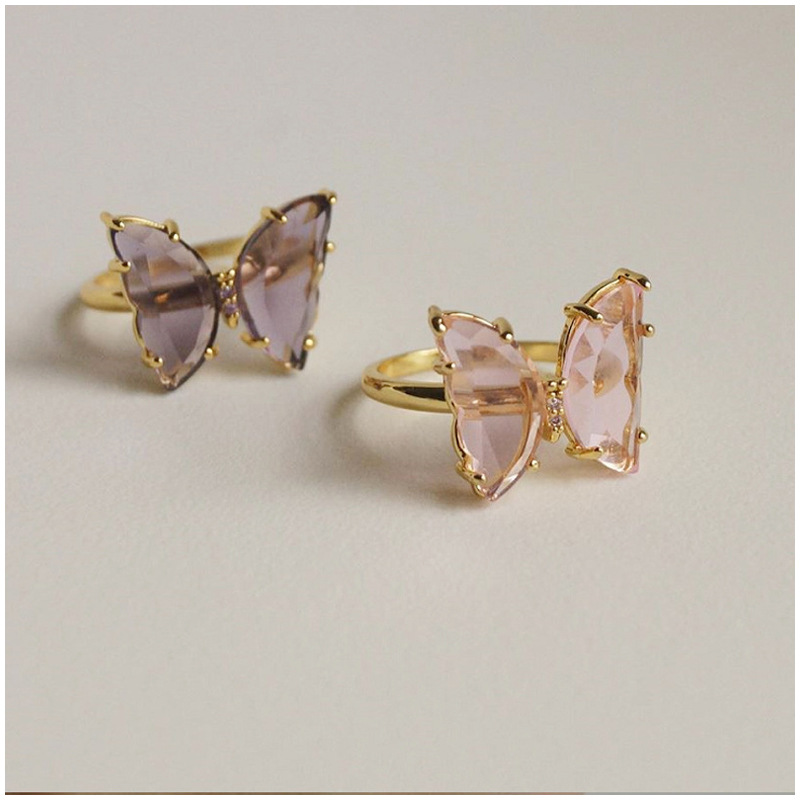 Crystal Glass Butterfly Gold-plated Openings Rings
