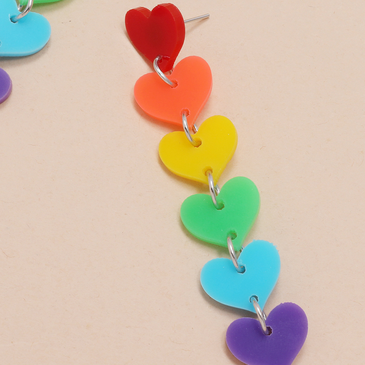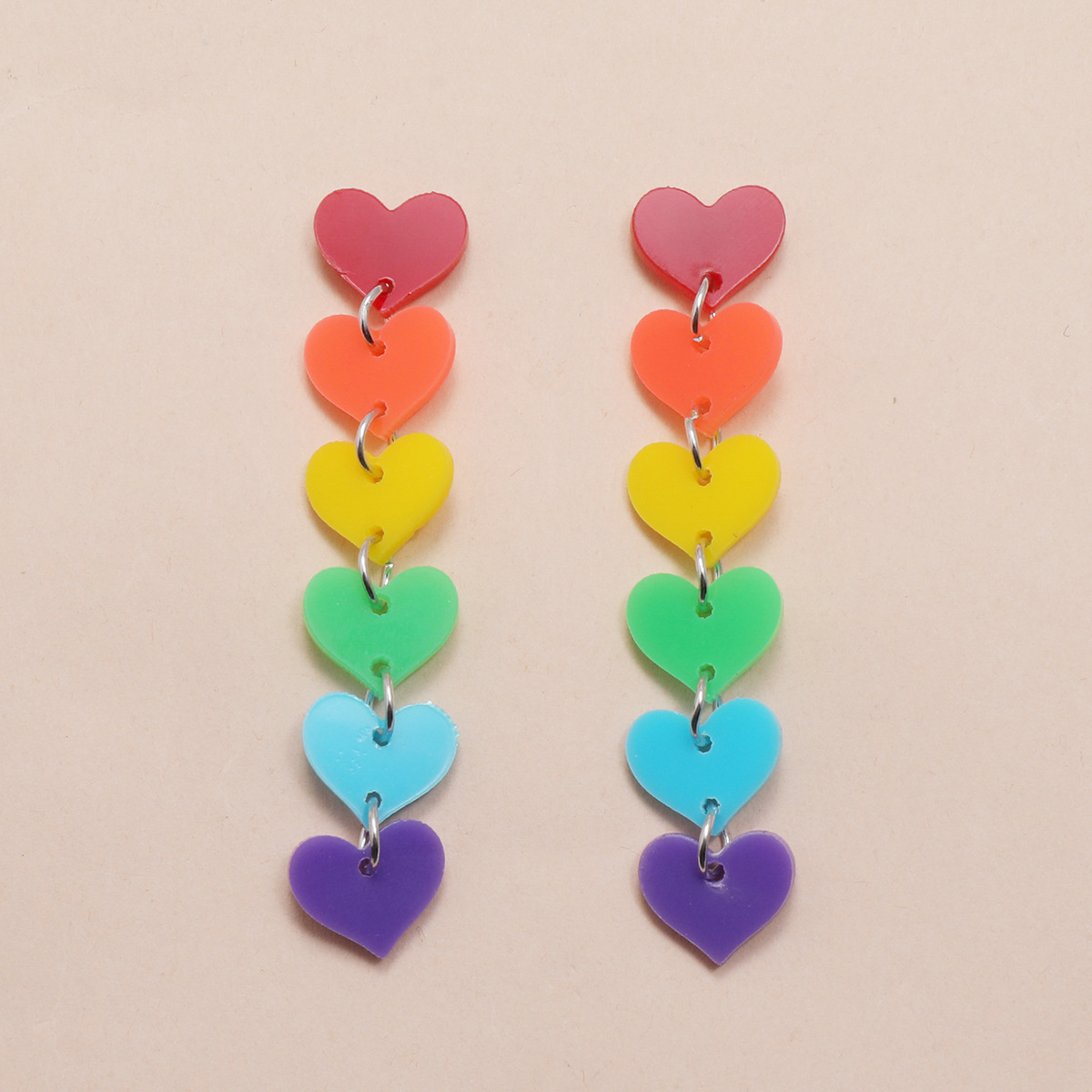 Rainbow Six Colors Acrylic Heart Earrings Cute Macaroon Earrings