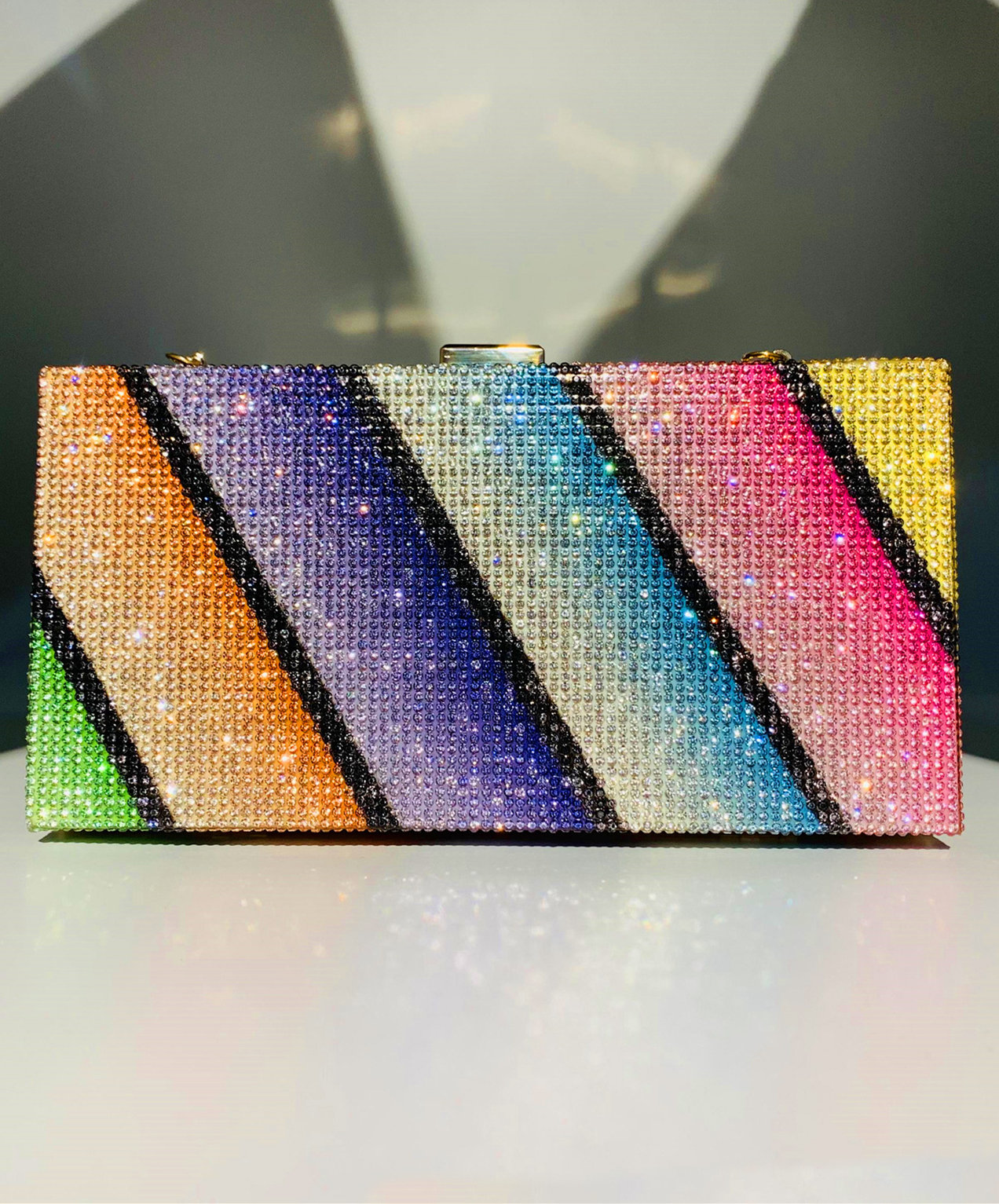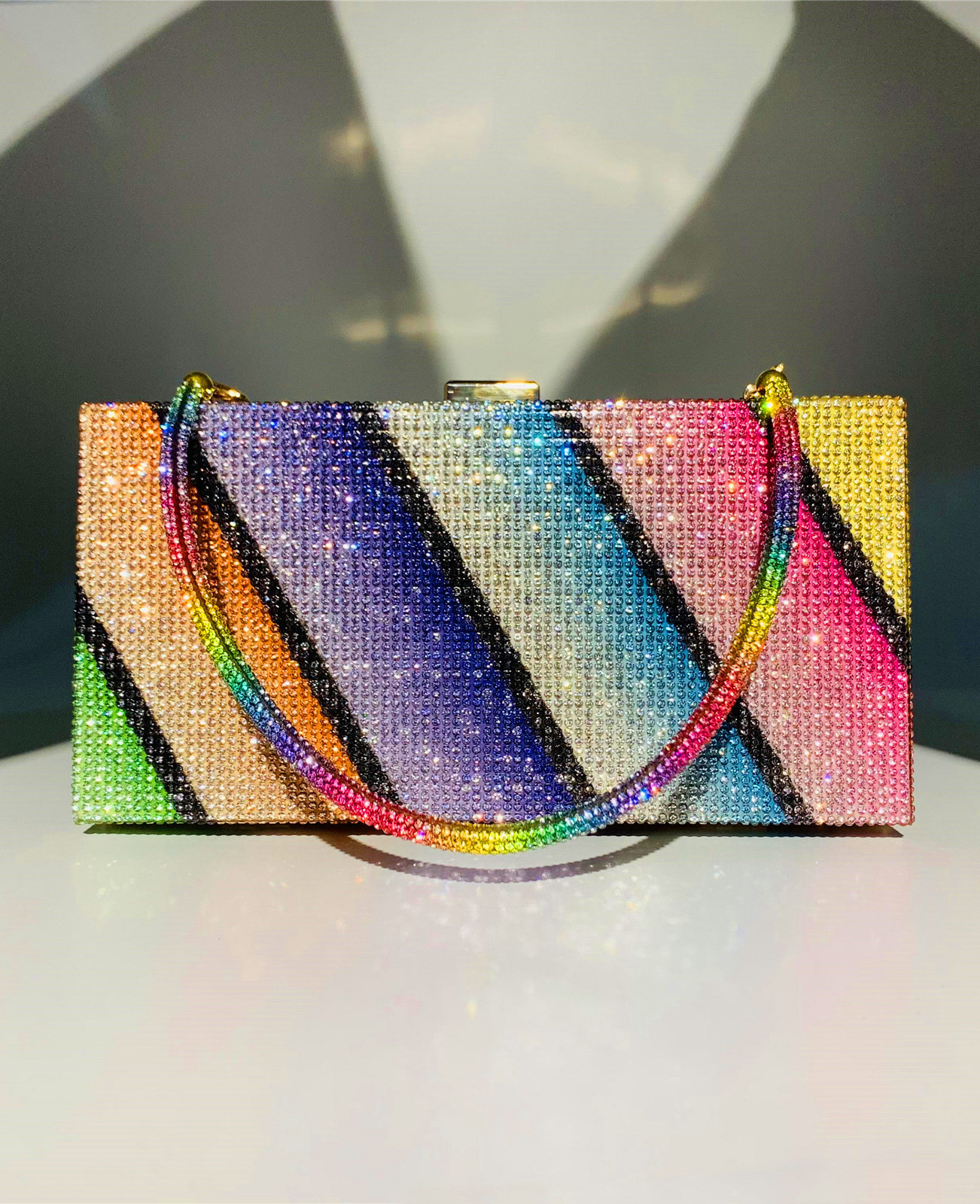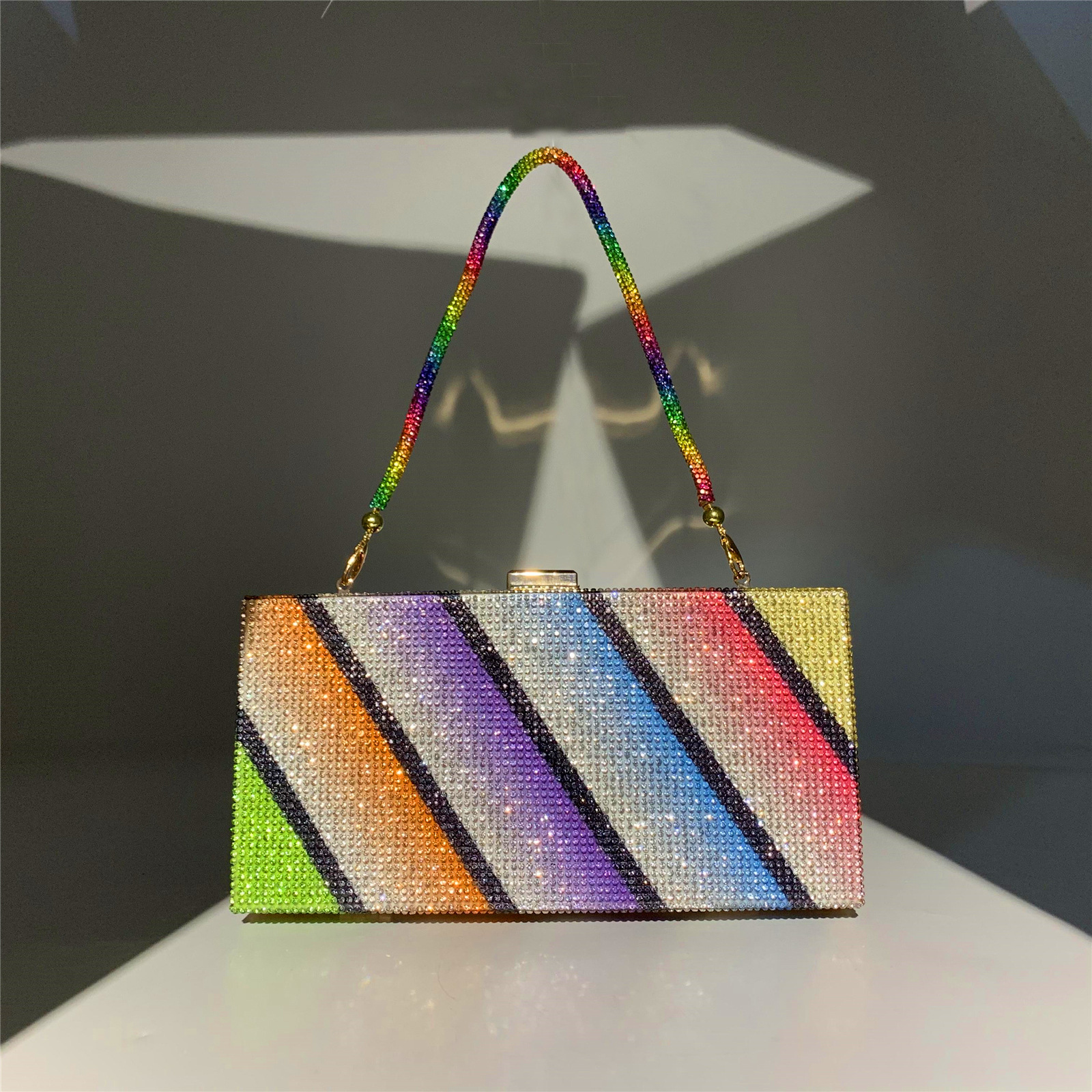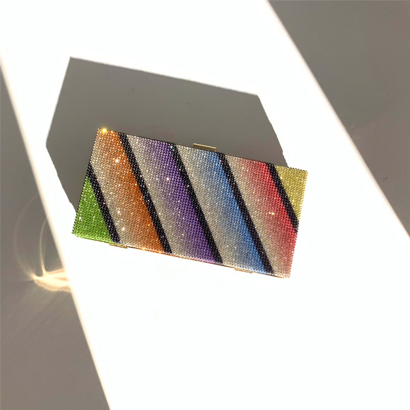 Shining Rhinestone Colorful Clutch Bags Diagonal Rainbow Evening Handbags for Women