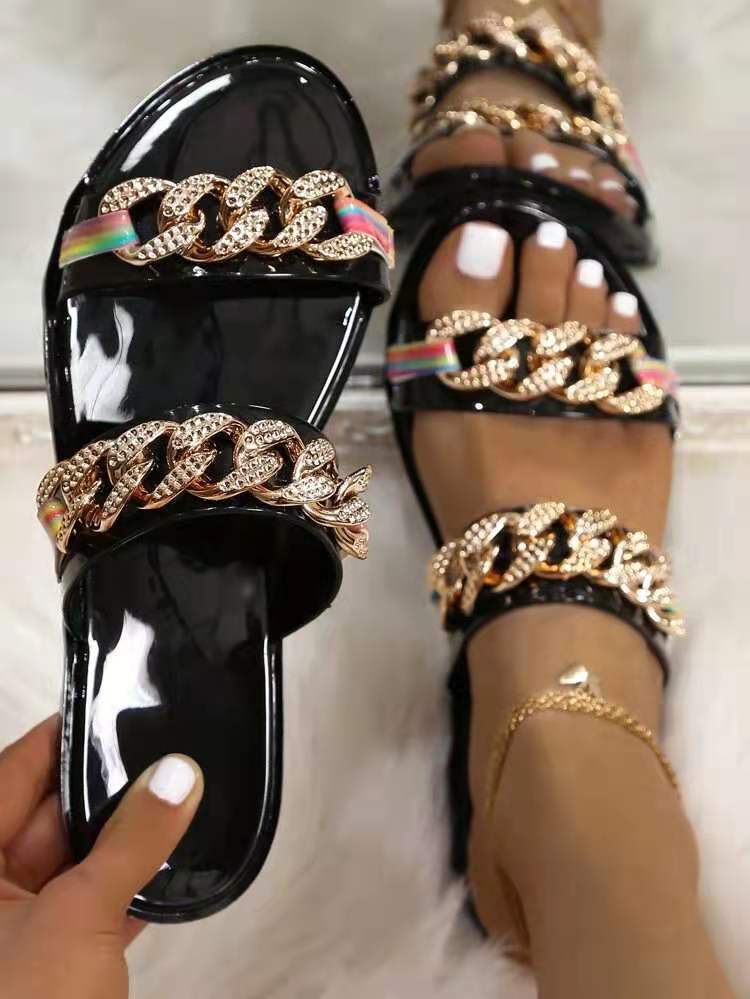 Fashion Beach Flat Shoes Metal Chain Sandals Large Size Slippers for Women