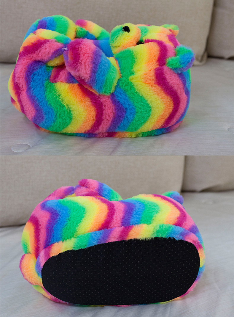 Trendy Teddy Bear Slippers Free Size Rainbow Color