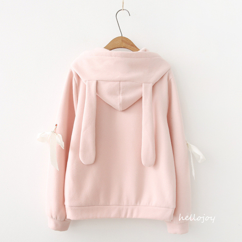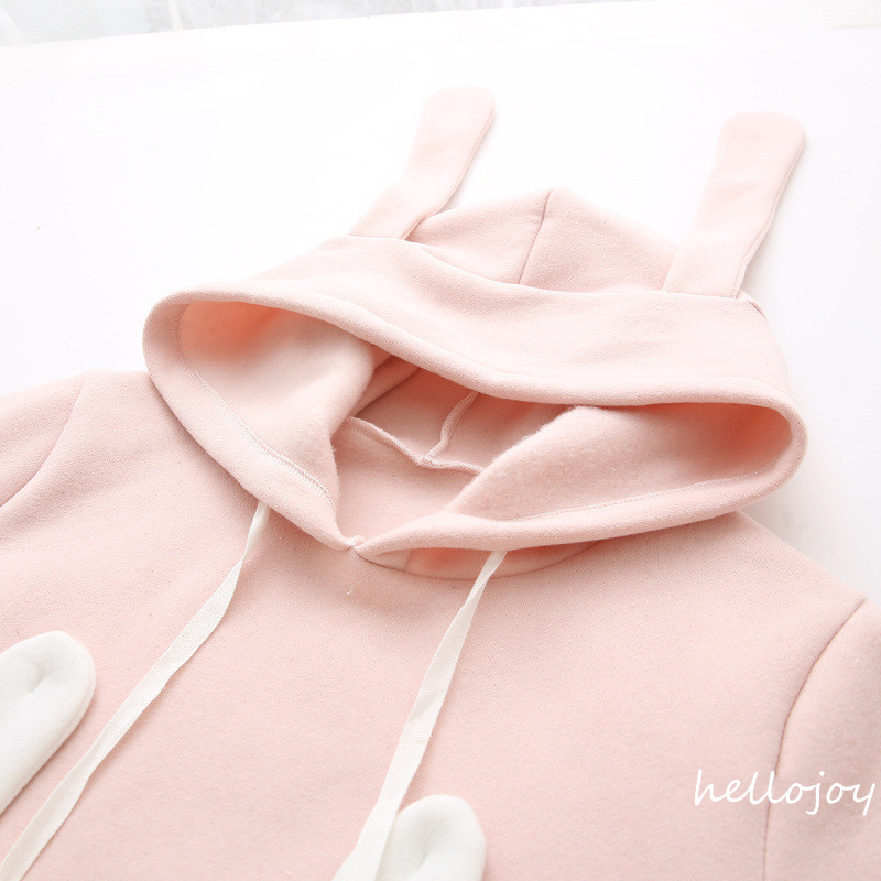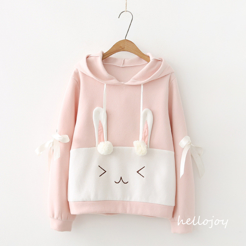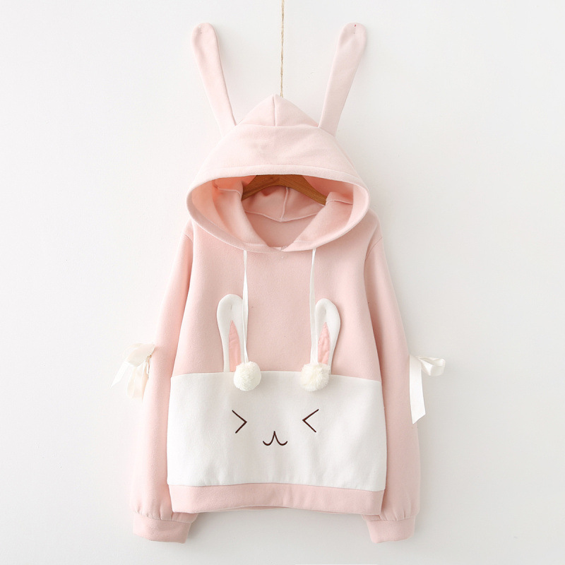Cute Pink Bunny Ears Long Sleeves Hoodies Pullover Sweatshirt
